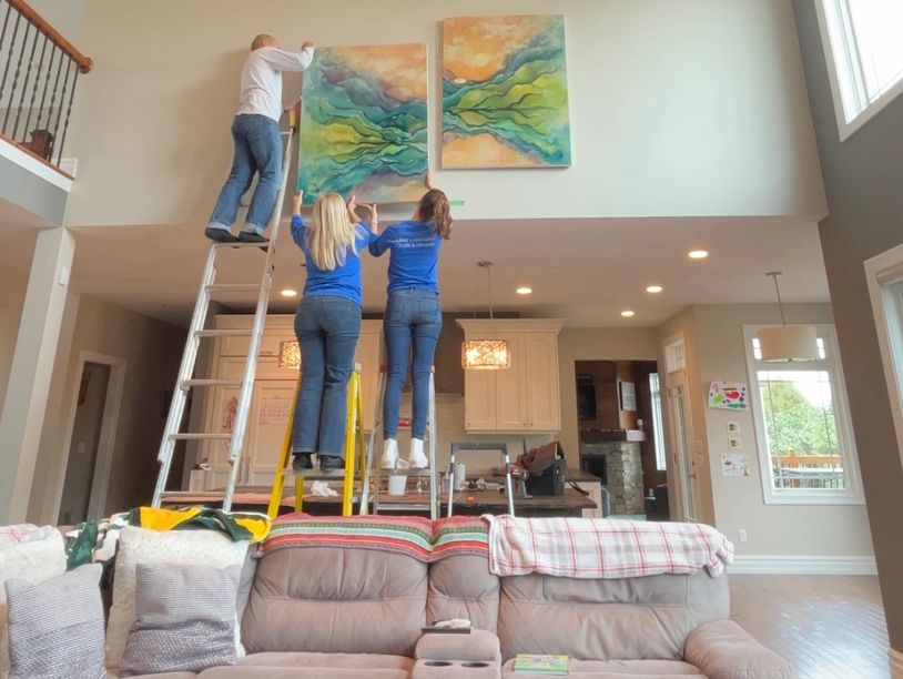 Our Art Installation Crew is dedicated to installing your treasured artwork with expert care—no matter how challenging the space. Whether it's a stairwell, or a uniquely awkward spot, we have the tools, experience, and artistic eye to make it happen.